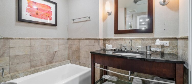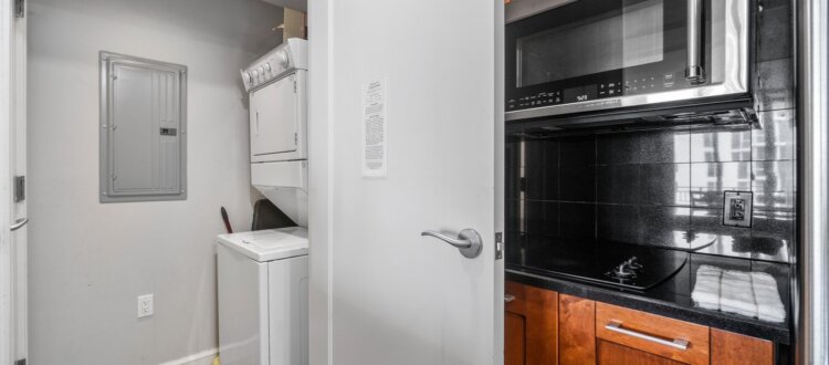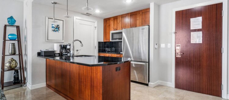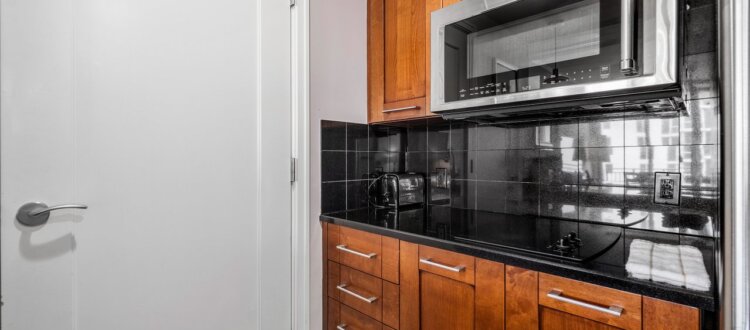 - Upscale amenities and home-like comforts in this large 1300 square foot Hotel Suite with a full kitchen and washer/dryer