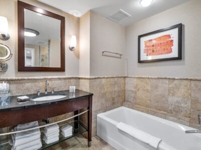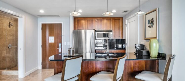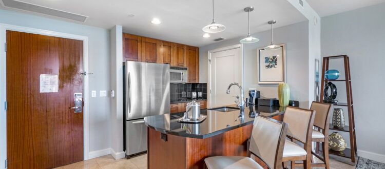 - Upscale amenities and home-like comforts in this large 1300 square foot Hotel Suite with a full kitchen and washer/dryer