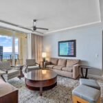 This larger 2/2 Ocean view luxury suite features a North facing balcony offers breath-taking views of the beach and intracoastal waterways. This newly renovated spacious 1397 sf condo features a King Bed, 2 double beds, a Queen pull out sofa bed, and two full baths fun to 9 guests to enjoy.