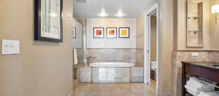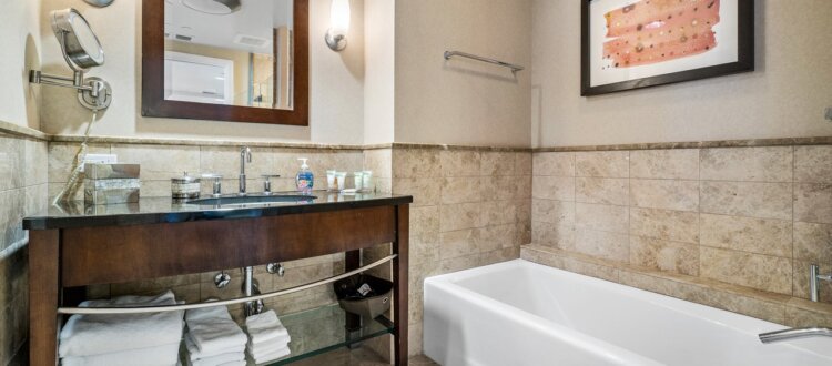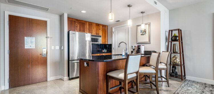 - Upscale amenities and home-like comforts in this large 1406 square foot Hotel Suite with a full kitchen and washer/dryer