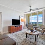 This larger 1406 sf 2/2 Ocean view luxury suite features a North facing balcony offers breath-taking views of the beach and intracoastal waterways. This newly renovated spacious Resort Suite features a King Bed, 2 double beds, a Queen pull out sofa bed, and two full baths fun to 9 guests to enjoy.