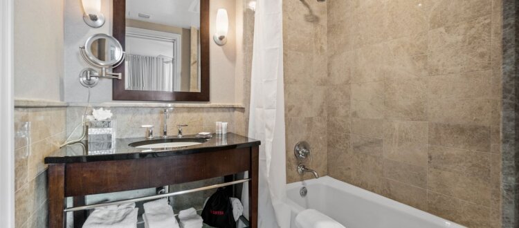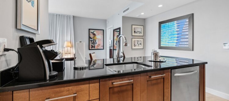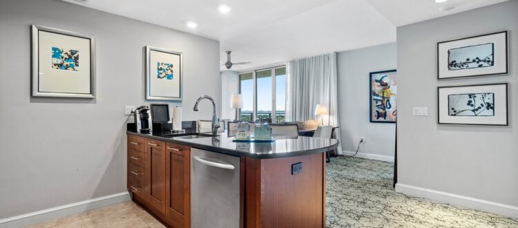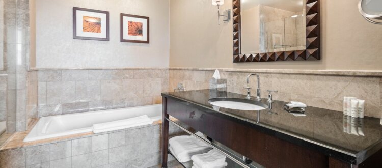 - Upscale amenities and home-like comforts in this large 1058 square foot under air – hotel suite