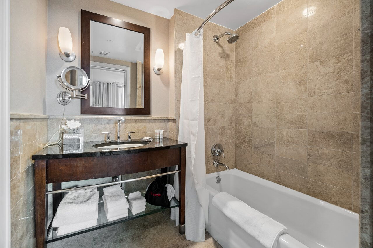 - Upscale amenities and home-like comforts in this large 1058 square foot under air – hotel suite