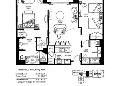 - Upscale amenities and home-like comforts in this large 1397 square foot condo hotel suite (inclusive of balcony area)