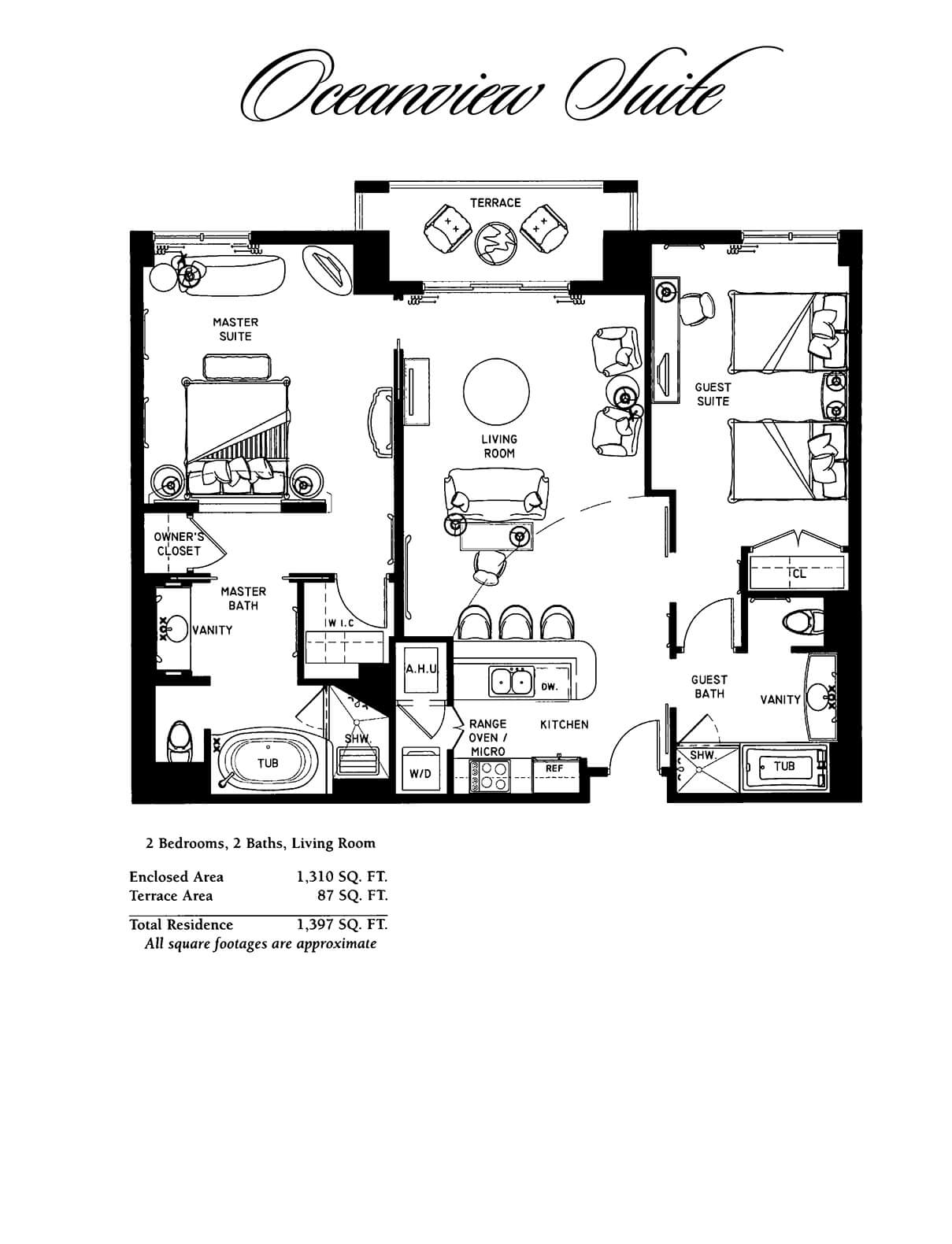 - Upscale amenities and home-like comforts in this large 1397 square foot condo hotel suite (inclusive of balcony area)